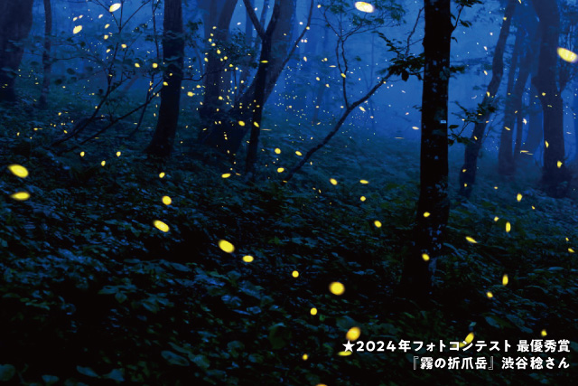 岩手県北の二戸市・軽米町・九戸村の3つの市町村にまたがる標高852mの山、折爪岳。豊富な湧水によって育まれた100万匹のホタルによる幻想的な森の姿をぜひご覧ください。