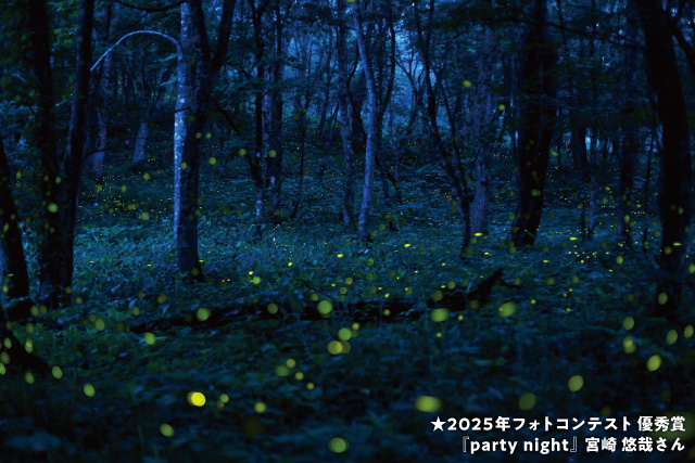 大体19時30分頃から飛翔と発光が始まり、20時頃に多くなります。山全体では100万匹のヒメボタルが、互いに惹かれ合い光を放つ幻想的な風景をお楽しみください。